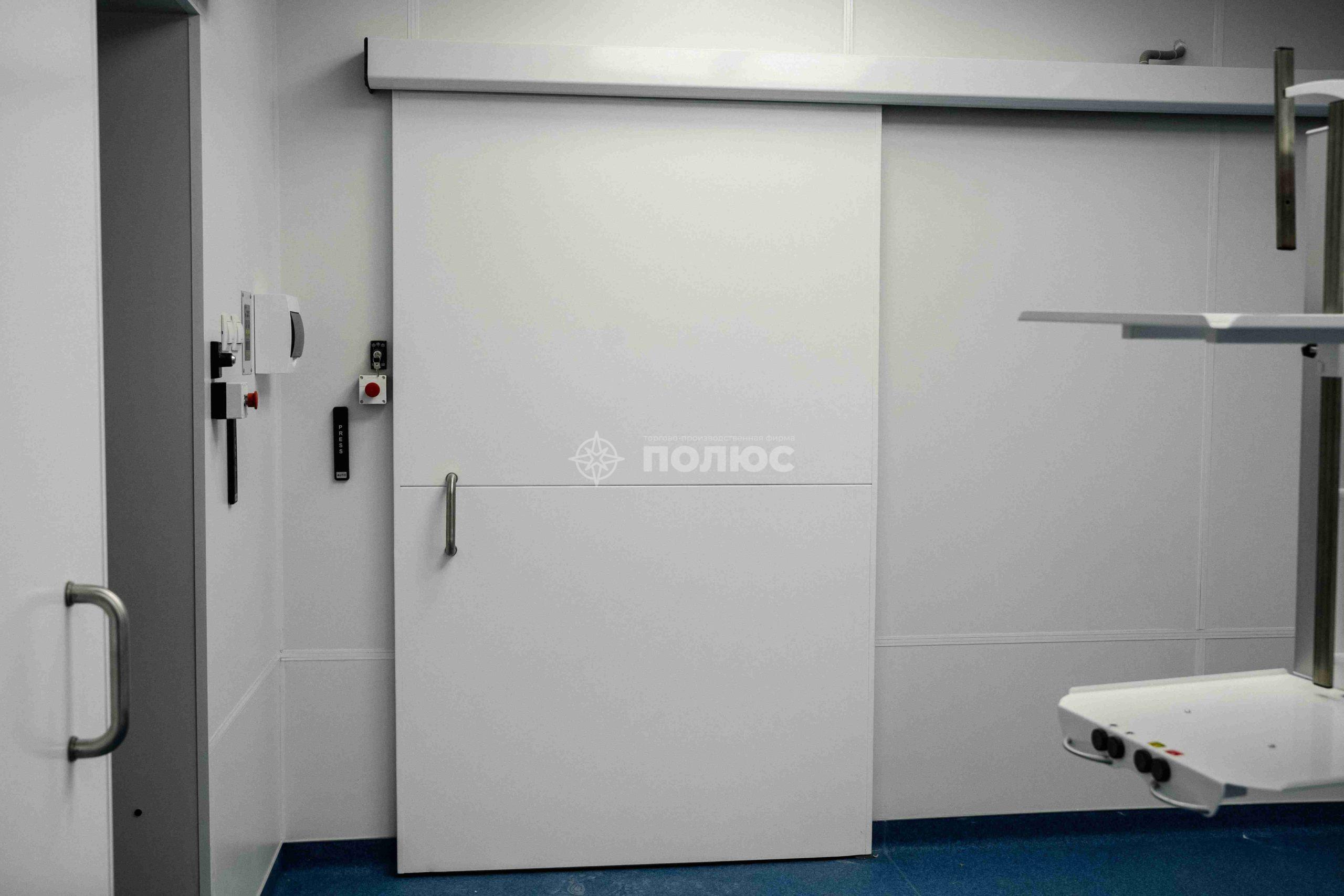 Рентгенозащитные двери откатные — конструкция для оборудования помещений с источниками ионизирующего излучения: рентген-кабинетов, кабинетов КТ, маммографии, ангиографии, флюорографии. Рассчитывается под индивидуальный проем по техническому заданию.